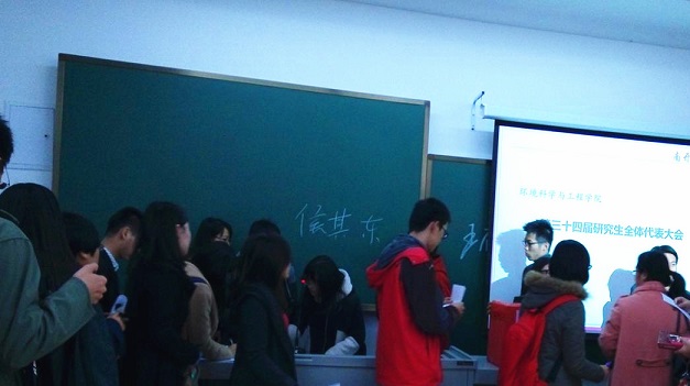 最后,院研究生代表大会代表们将填好的选票投入选票箱。根据选举规则,李洋阳、马丹、侯其东、代政、程珂、盖龙霜、刘云婷7人当选南开大学第三十四届研究生代表大会代表。