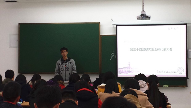 首先, 主持人介绍大会具体流程。随后,张老师对研究生代表大会召开的意义及研究生代表大会代表的职能进行了详细说明,并鼓励同学们积极参与学校建设,提出科学合理提案。10位校研究生代表大会代表候选人依次上台,就各自基本情况、对代表委员的认识、竞选原因以及工作建议等方面进行了演讲,竞选者精彩的演讲和真诚的表现赢得了场下热烈的掌声。
