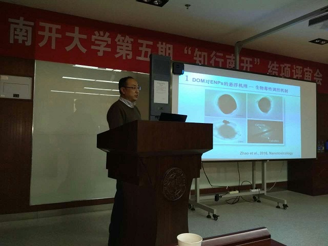 王震宇教授从自身研究成果及进展出发,围绕人工纳米颗粒(engineered nanoparticles, ENPs)就其在高等植物体内的迁移转化、可溶性有机质对ENPs毒性调控机制、潜在的神经毒性、对人体肺表皮细胞的毒作用过程、在食物链中的传递等五个方面进行了详细阐述。此外,他还特别强调创新的实验思路在科学研究中的重要性。报告最后,他对环境中人工纳米颗粒的研究方向进行了展望。报告获得了与会老师及同学们的关注与好评,大家在报告结束后积极提问,与王教授进行互动交流。
