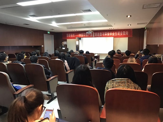 于教授为此场讲座精心准备,为广大学生讲述环保产业的发展现状,开场便以中国的能源问题逐步引出话题,从我国的能源结构、环境污染和国家经济发展,结合国家 “十三五”计划和水十条、气十条、土十条等国家一系列国家政策,用数据阐明环保专业的就业前景更加明朗,就业机会和岗位将会越来越多,同时针对我院的专业分布和环保产业的布局,为男生、女生给出不同的就业建议,尤其为各位女同学提出就业要求,大家应该在专科科研的同时,增加自身技能训练和培养,比如考取证书,除此之外,于老师也结合环科院的专业发展,强调学院也会进一步完善教学和职业训练体系,但于老师始终强调,作为一名环保学子一定要掌握专业技能,增强就业能力,做好就业准备,能够在未来的就业中争取更多的选择,鼓励大家一定要努力学习,为我国的环保事业做贡献,希望南开环科院能够培养出更多的英才,讲座结束,于老师为在座同学答疑解惑,同学们热情提问,结合自身的专业和研究方向、自身职业发展,于老师结合自己学生的发展为大家提出中肯的建议,在场的学生收获颇丰。