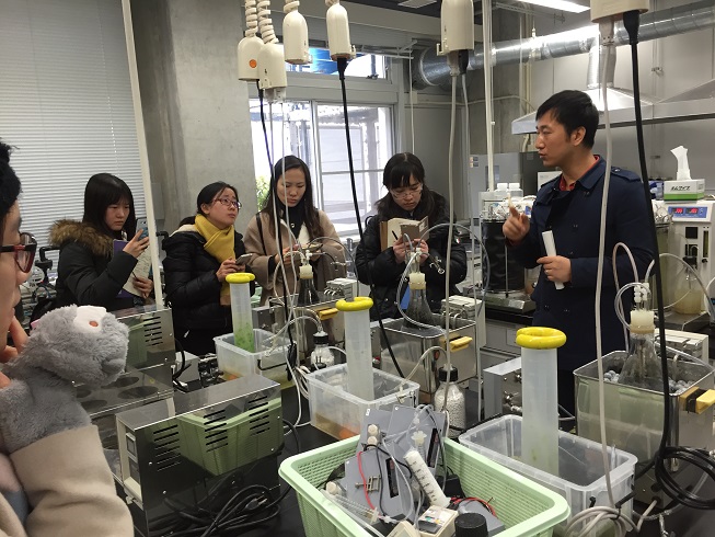 1月15日,学院师生来到了北九州市立大学,北九州市立大学环境工学部的安井教授向我院师生代表讲述了北九州市从“七色烟城”到“星空之城”的浴火重生之路,具体介绍了北九州市的治理模式,其中提及的企业与公众的环保意识以及科研人员的求实态度着实让人钦佩,同时日本留学生也介绍了他们正在进行的项目概况与进展。在北九州市立大学高伟俊教授的带领下,我院师生代表参观学习了校内的太阳能电池、燃料电池、屋顶绿化、自然换气系统等环保技术与设施,实地感受了日本的下水道文化。在北九州大学刘兵老师的带领下,我院师生参观了国际环境工学部管理有序、高自动化的实验室。我院师生代表们积极提问,与教授和日本留学生共同交流和探讨,氛围十分热烈。