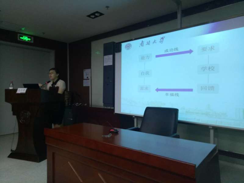首先,马丽娇指出了大学与中学的不同,点明了在大学生活中自主规划的重要性并向同学们解释了生涯的含义和组成。