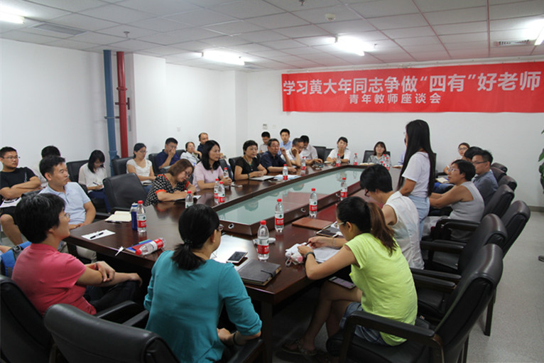 (通讯员 李享)为贯彻落实中共中央关于向黄大年同志学习的要求,为鼓励青年教师积极投身于学校、学院的建设发展中去,我院于9月19日下午两点在学院B209会议室召开“学习黄大年同志,争做‘四有’好老师”青年教师座谈会。会议由我院孙红文院长主持,鞠美庭书记、祝凌燕副院长、丛培芳副院长及部分优秀教师、青年教师代表30余人参加座谈会。会议伊始,孙红文院长就开展此次座谈会的重要意义进行了阐述,强调学院的可持续高速发展全都寄托在青年老师身上,希望各位年轻教师要立志高远、积极奋进,以实际行动为学校和学院的“双一流”建设及学院的快速发展贡献自己的力量。孙院长希望大家畅所欲言,就做“四有”好老师多交流宝贵经验,对学院的相关政策和服务多提希望和建议。