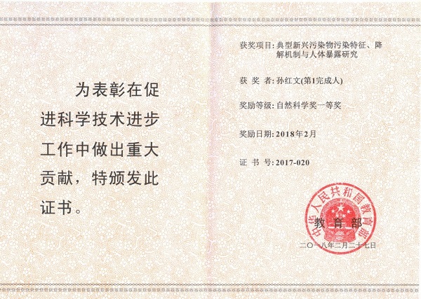 孙红文、祝凌燕、罗义等教授完成的“典型新兴污染物污染特征、降解机制与人体暴露研究”获得2017年度教育部高等学校科学研究自然科学一等奖。研究成果阐明了全氟化合物、抗生素及其抗性基因等若干典型新兴有机污染物的区域污染特征、迁移转化规律及其微观机制、人体暴露与跨代传输规律,取得了若干新的科学认知,发表SCI论文88篇,获得国内外同行的高度评价,总他引3422次, Nature撰文正面评述相关研究成果,为推动相关领域的理论进步做出了重要贡献,并为国家化学品管理及履行国际公约提供了重要的科技支撑。项目组三人获得国家杰出青年基金,项目组还获得天津市“131” “新兴污染物”创新团队以及教育部学科引智创新计划(111计划)“新兴污染物环境过程与风险评估”的支持;科研反哺人才培养,支撑“环境化学”国家精品课建设,获得天津市教学名师等教学荣誉称号。