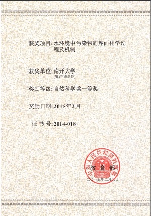 污染物的多介质界面过程决定其迁移转化和生物效应。揭示界面过程的控制机制是探明污染物源汇机制及区域环境过程的重要理论基础;污染物界面理论的突破是发展污染控制/修复新材料及新方法的前提。朱东强、陈威教授等人针对水环境中污染物的界面化学过程,选择重金属、持久性有机污染物和新型有机污染物等为研究对象,围绕污染物的多介质界面过程及机制展开系统研究,揭示不同环境体系中污染物与介质作用的规律,构建具有活性界面的功能化环境材料。在污染物界面交互作用的电子效应、污染物与多孔材料作用的分子尺寸效应、表面功能化吸附材料的构建、污染物的催化还原过程及其界面作用机制等方面做出了有国际影响力的创新性工作。获得教育部高等学校科学研究优秀成果奖(科学技术)自然科学奖一等奖,共发表SCI论文50篇,SCI他引1270次,10篇代表论文SCI他引701次,其中3篇入选环境生态领域“ESI高被引论文”,1篇入选“2008年度中国百篇最具影响国际学术论文”,1篇入选J. Colloid Interf. Sci. 2010-2011年高被引论文。获国家发明专利授权6项。项目研究期间,2名成果完成人获国家杰出青年科学基金,1名成果完成人获全国百篇优秀博士论文提名奖。