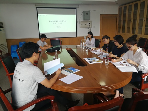 随后,北京大学城市与环境学院团委副书记关汉岳详细介绍了该院的总体情况与学生工作的开展情况。双方就党团班级建设、活动开展、新生教育、学业辅导、特色工作等相关问题进行了深入的交流与探讨。马丽娇表示与兄弟院校的交流使我们获益匪浅,双方学院专业相似、体量相近,今后可开展更广泛深入的交流与合作。