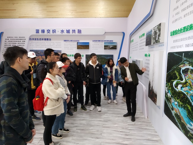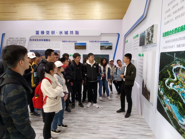 之后同学们来到“千年秀林”,并有幸得到了曾为习近平总书记服务的金牌讲解员的接待。随着金牌讲解员的介绍,同学们了解了雄安新区环境治理工作的情况和计划。同时,雄安新区生态优先,绿色发展的建设理念,着力打造蓝绿交织、水城共融的新区空间生态产业结构的宏伟蓝图,也完全呈现在同学们面前。之后,同学们还亲赴附近水域,用所携带的设备对当地的大气、水质状况进行了检测,加深了对京津冀地区的生态环境问题的了解和对雄安新区环境治理工作的认识。
