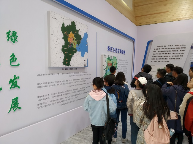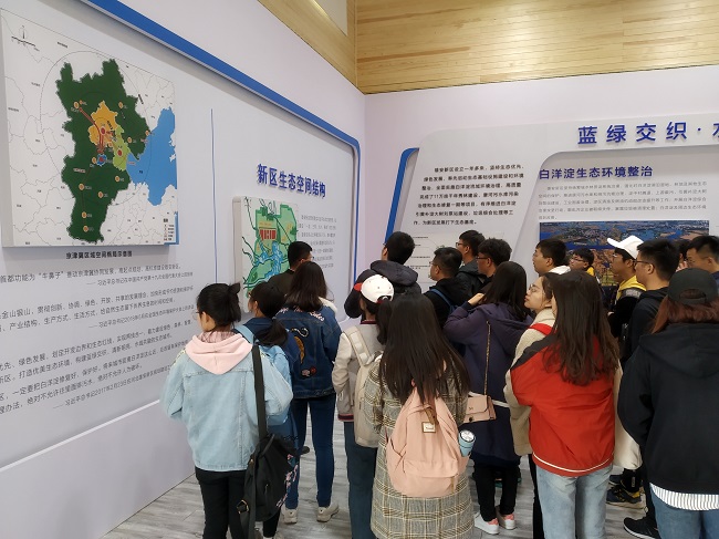 同学们首先到雄安新区市民服务中心参观学习,当地工作人员对雄安新区的绿色经济建设与规划的讲解以及园区内无人超市、无人驾驶售货车、无人驾驶电动巡逻车等一批创新科技应用,让同学们充分认识了雄安新区“世界眼光,国际标准,中国特色,高点定位”的意义,也让同学们心中有了人与自然和谐发展的未来生态城市的轮廓。