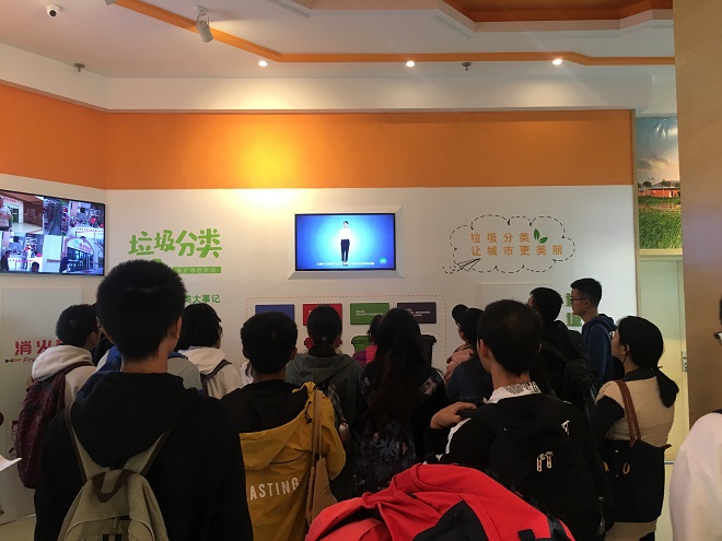 在生态城环卫科技体验馆,同学们通过短片了解生态城城市管理创新模式和先进理念,通过参观模型感受信息化、自动化和智能化的垃圾处理体系。通过相关老师的讲解,同学们了解了模拟刷卡,垃圾分类,垃圾分拣,垃圾处理,积分兑换等一系列垃圾分类处理的流程。