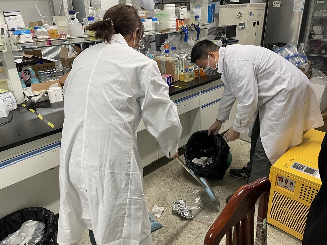 活动当日,研究生党支部由党员带头充分发动团员群众,开展了实验室大扫除活动,对实验室内地面、台面、仪器、垃圾进行了全面清洁处理,营造了良好科研实验环境。