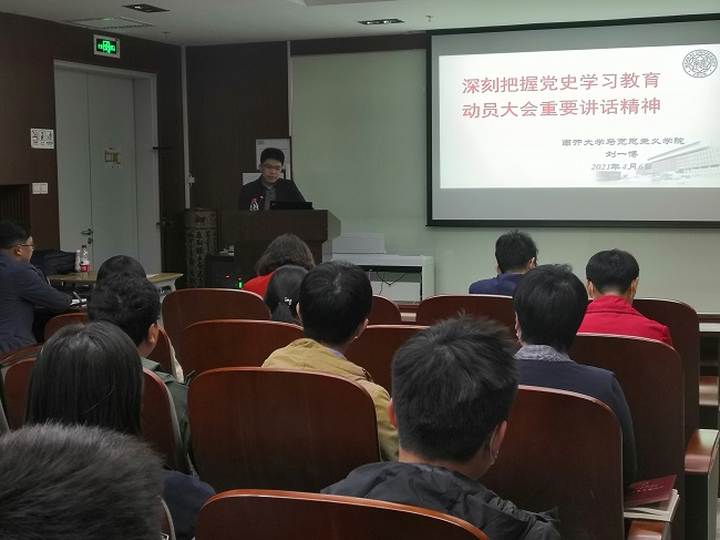[通讯员:曹家琦]为深入开展党史学习教育,扎实做好中央和学校党委有关安排部署,4月6日下午,英国上市公司365邀请马克思主义学院副院长、副书记刘一博,举办“深刻把握党史学习教育动员大会重要讲话精神”的专题讲座,深入解读习近平总书记在党史学习教育动员大会上的讲话精神。参加此次学习的有:来院参加党支部共建的天津市环境气象中心党支部成员、学院教师党员及各党支部书记和宣传委员。