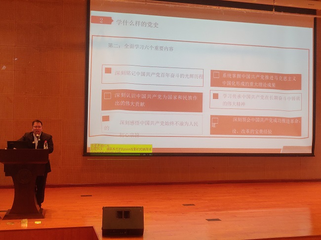 讲座最后,蓝海老师强调,百年只是序章,未来必将可期。站在历史和未来的交汇点上,新的伟大征程正在我们的面前展开,让我们更加紧密地团结在以习近平同志为核心的党中央周围,以更加坚定的决心、更加昂扬的姿态,开启新征程、奋进新时代,以优异成绩庆祝建党一百周年。