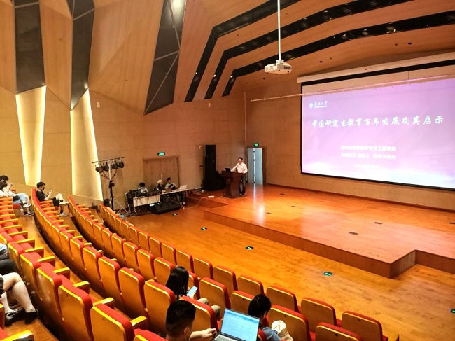 本次党课的培训主题为“中国研究生教育发展史”。鉴于当代研究生教育的重要性以及我国对研究生教育的高度重视,周教授对我国研究生教育的发展、经验进行了讲解,同时阐述了其对新时代研究生教育发展与改革的深刻思考。