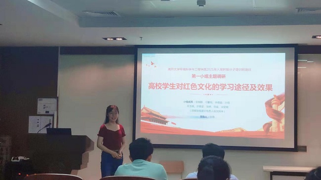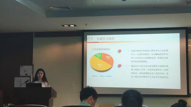 在调研报告展示阶段:17个小组,围绕“学生党员的理想信念调查”、“当前研究生心理压力的常见来源及缓解措施”、“如何提高理工科学生对实验室安全的重视程度”、“服务党校发展——调研往届积极分子在培训前后入党动机的变化”、“如何将党史学习和为群众办实事相结合”展开问卷调查和分析。
