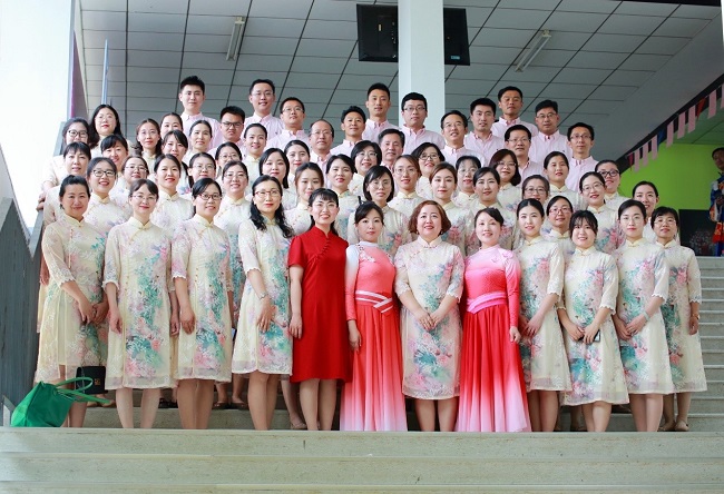 学院75名教职工热情参与此次比赛,为高质量准备比赛,我院赛前特聘请校职工合唱团指挥邱丽娜老师为我院进行指导。合唱排练于4月16日正式启动,全体参赛人员利用中午休息的两个小时进行排练,共计排练9次,近两个月的时间里,老师们在邱老师的指导下,渐入佳境,音准音色、声部和声得到质的飞跃。合唱比赛在八里台田家炳音乐厅上演,演出的第一首歌是《唱支山歌给党听》,全体教职工慷慨激昂又满怀深情的演绎了对党和祖国母亲的热爱之情。第二首歌曲为《走向复兴》,歌曲反映了党和国家的壮丽发展史,包含全民族情感的凝聚,同时又表达出中国人民实现民族复兴理想的心愿。