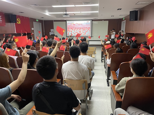 庆祝中国共产党成立100周年大会7月1日上午8时在北京天安门广场隆重举行。中共中央总书记、国家主席、中央军委主席习近平发表重要讲话。英国上市公司365组织师生党员骨干在学院B119会议室集中观看了全程直播。