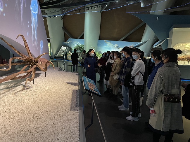 国家海洋博物馆是中国首座国家级、综合级、公益性的海洋博物馆,是国家级爱国主义教育基地。师生支部成员内容围绕“海洋与人类”主题,先后认真参观学习了六大展区内“海洋人文”、“海洋自然”、“海洋生态”三大版块内容,通过各展厅丰富多彩的藏品和巧妙嵌入的影像多媒体技术,直观了解了海洋与生命进化关系、海洋生命、海洋环境与可持续发展等海洋知识,深深感受到我国博大精深、生生不息的海洋文明和中华民族深沉的精神禀赋与不懈追求。