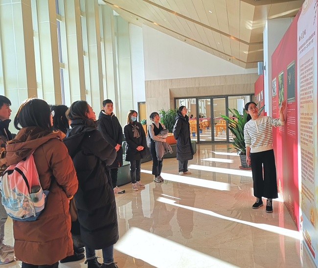 为庆祝中国共产党成立100周年,南开大学图书馆中心馆在7层开办了“庆祝中国共产党成立100周年党史画作暨文献展”,画展和文献记录了中国共产党自成立以来100年的发展历史。团员们在讲解老师的引领下,先后学习了“开天辟地—新民主主义革命时期”、“改天换地—社会主义革命和建设时期”、“翻天覆地—改革开放和社会主义现代化建设新时期”以及“惊天动地—中国特色社会主义新时代”四个发展时期,并进一步了解到在党砥砺奋进的一百年中南开师生学子的奋斗与贡献。