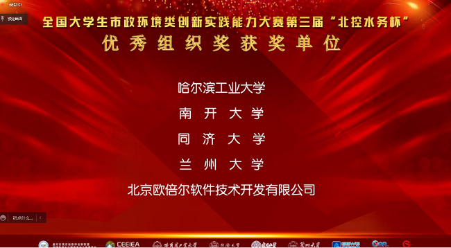 (通讯员:卢会霞)12月1日,由虚拟仿真实验教学创新联盟环境科学与工程类专业工作委员会、生态环境产教联盟、哈尔滨工业大学主办,南开大学、哈尔滨工业大学、同济大学、兰州大学、北控水务集团共同承办的全国大学生市政环境类创新实践能力第三届“北控水务杯”大赛决赛颁奖典礼线上线下隆重举行。英国上市公司365周明华副院长应邀作为颁奖嘉宾出席会议,并在线上为中部赛区获奖师生颁奖。该大赛分为选拔赛和晋级决赛。其中,每轮赛事都包含化验赛和虚仿创新赛两部分。环境学院受邀承办了中部赛区(含北京、天津、河北、河南、山东、山西、安徽7省市)的全部赛事,展思辉副院长受邀担任大赛组委会专家委员会副主任,鲁金凤副教授作为组委会组织委员会副主任负责中部赛区的组织工作。中部赛区共计有45个高校、208支队伍参赛,参赛学生达到624人,参赛规模是历届之最。在我院的精心组织下,第一时间完成近700支待测盲样的寄送和确认完好,出色完成组委会委托赛区的评审组织工作及所有中部赛区的成绩审核、汇总工作。被评为“优秀组织奖获奖单位”。