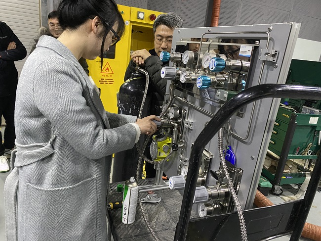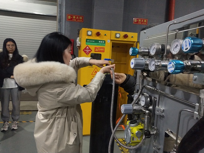 此次培训邀请了实验室气路维护公司专业工程师进行现场讲解,针对气路使用的流程做了全面而细致的培训。工程师利用气路模型配合讲解进行示范操作,主要包括阀门使用、气瓶放置、气瓶更换流程等,让同学们对气路操作认识更加全面。随后,涉及气体实验的同学一一进行了实际操作,对于同学们不规范及存在安全隐患的操作行为,工程师给予了耐心指正。