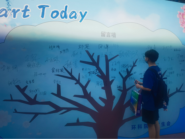 学院与研究生会为新生精心准备了迎新大礼包包括院衫、南开大学口罩、合影区、留言板等,引得新老生驻足。在迎新现场布设喜迎党的二十大生态文明发展成果展,为新生上好生态文明教育第一课。