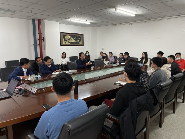 冯银厂在发言中指出二十大报告中第一次提出了胸怀天下,体现了中国的大格局,大胸怀,他建议大家深刻体会总书记的思想。在谈到减污降碳目标时,他指出,生态环境保护涉及到的问题很复杂,需要大家努力钻研。最后在谈到习近平总书记对青年的寄语时,他指出奋斗、吃苦、担当正是当今青年人所欠缺,需要加强的宝贵品质,希望广大青年学生特别是青年党员要时刻勉励、警醒自己。