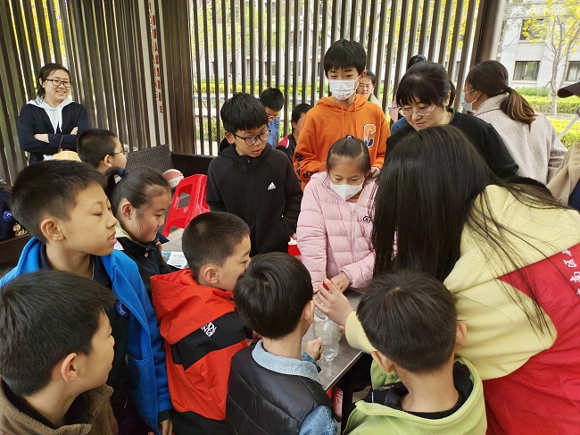 据悉,创新性劳动服务是《服务学习:饮用水与健康》课程的主旨理念,课程将“设计思维五步法”引入教学,在活动开展之前对文莱花园居民和社区小朋友进行了“同理心”访谈,深入了解大家日常生活中对健康饮水、节约用水、保护水资源等方面需求的基础上,由课程同学全程自主专项策划设计而成。在实现对居民、小朋友“节水、低碳、环保、健康饮水”理念、知识传递的同时,也通过创意手工等活动旨在实现“创新性劳动”的大学生、小朋友之间的双向协同培养。