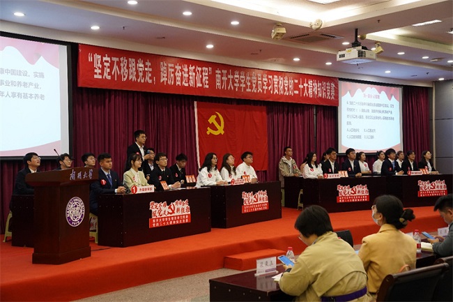 比赛开始前校党委副书记牛文利致辞,表示本次学生党员学习贯彻党的二十大精神知识竞赛充分调动了学生特别是学生党员的积极性,在引导全体学生学深悟透党的二十大精神、提升整体理论水平、提高党性觉悟等方面都取得了良好成效。期望大家通过比赛,准确领会党的二十大精神,全面系统深入地学习习近平新时代中国特色社会主义思想,不断锤炼个人的品格,提升党性修养,将二十大精神与实践结合,以南开杰出校友周恩来为楷模,做有理想、敢担当、能吃苦的新时代好青年,为实现中华民族伟大复兴贡献属于南开人的力量。