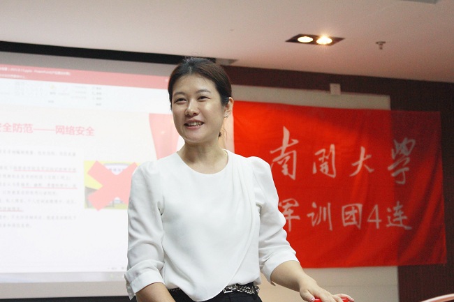 学院副书记由佳代表全院领导,对带训教官表示感谢,并给所有参训同学提出三点要求:提高思想意识,端正自我态度;严明军训纪律,遵循军训守则;注重个人安全,锤炼身体素质。