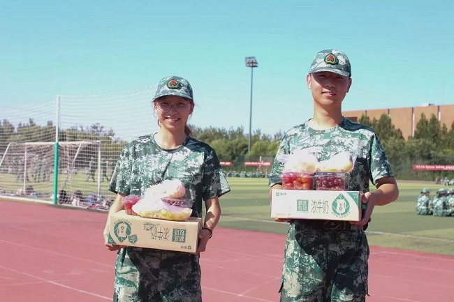 一箱箱慰问品承载着关爱与温暖。学院领导们为参训学生每人分发一箱牛奶、一袋水果,葡萄、圣女果、桃子、香蕉……沉甸甸、满当当的。环科学子们手里拎着慰问品,纷纷感谢学院的关怀,并表示将不负学院和老师们的殷殷嘱托,胸怀家国,勇担责任,不断淬炼自身,锻炼意志品质,提升综合素质,在青春的赛道上奋力奔跑!