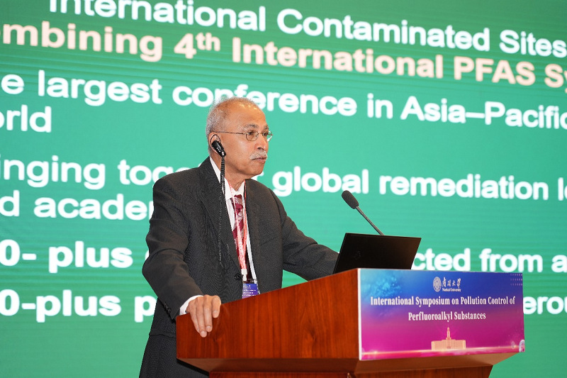 澳大利亚纽卡斯尔大学Laureate教授Dr. Ravi Naidu发表题为“Advances in PFAS science: Source, distribution, risks and management”的主旨报告。另一位主旨报告人中国科学院院士、中科院生态环境研究中心研究员江桂斌在22日下午发表题为“New pollutants study in China: History & future perspective”的主旨报告。