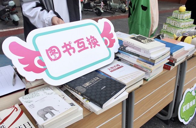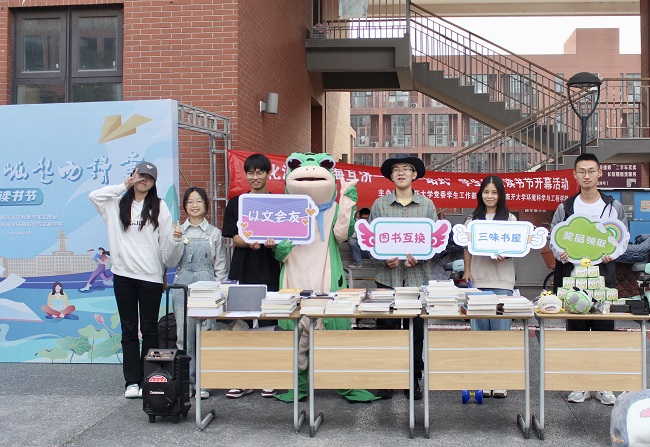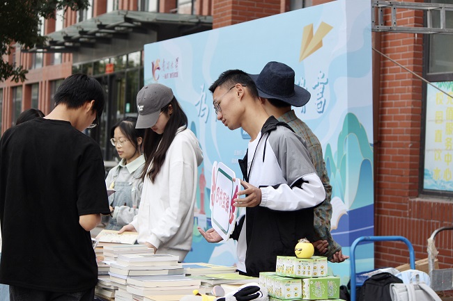 活动现场设置了多个书籍交换摊位,同学们用自己闲置的书籍交换新的阅读资源,一本本旧书、好书流动起来。“以文会友”的互动环节热闹非凡,借阅处提供留言簿和明信片,同学们纷纷留下独特的心得体会,使静态的图书带上了生命与情感。“三味书屋”环节搭建了线上互动平台,根据图书类别建立读书分享群,同学们在“书屋”里共读、打卡、分享,将个人的阅读体验与他人链接,扩展阅读圈子。