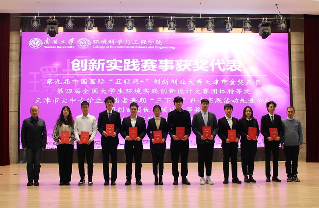 环境科学系主任汪磊老师、环境工程系主任史国良老师为在创新创业大赛、国创项目中、环境实践创新设计大赛等比赛中获奖学生代表颁奖。