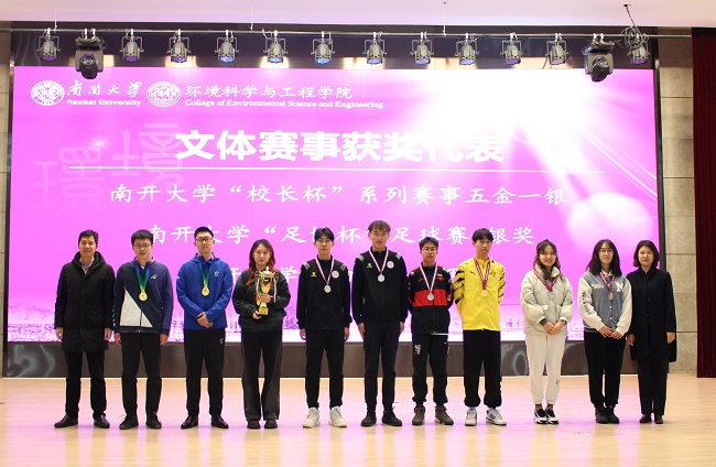 学院党委副书记、副院长由佳老师,资源循环科学与管理系主任漆新华老师为在各类体育赛事中获奖学生代表颁奖。