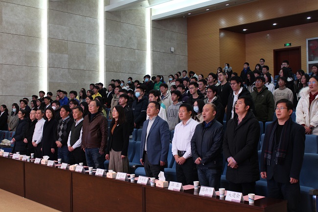 颁奖典礼第一项,全体师生奏唱中华人民共和国国歌。