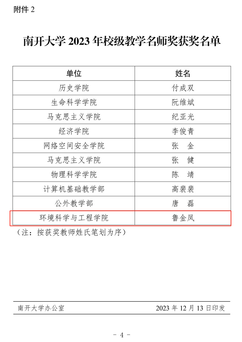 (通讯员:屈楠)关于公布南开大学2023年校级教学团队和校级教学名师奖评审结果的通知: