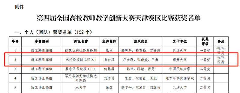 热烈祝贺鲁金凤老师突出重围,获得全国高校教师教学创新大赛天津市一等奖,并推荐国赛!鲁金凤老师是南开大学唯一一位获得一等奖的老师。