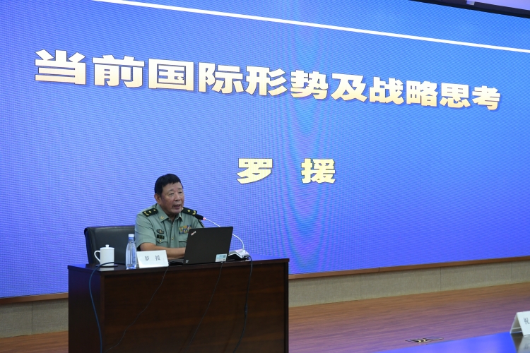罗援将军在报告中,用翔实生动的事例、鞭辟入里的分析、激情洋溢的语言,详细分析了俄乌冲突、巴以冲突等国际热点问题的现实原因和历史渊源,系统阐述了我国当前周边安全环境、国家安全、软实力建设等问题,并结合当前国际大局提出了“国防自信”的概念。
