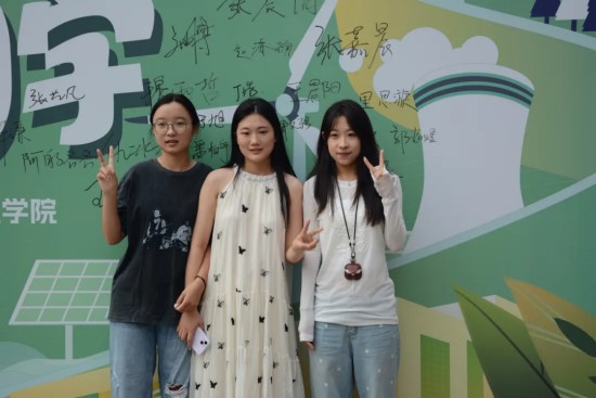 领完大礼包后,同学们来到拍照留念处。在这里,大家留下了初入校园的美好瞬间,照片现场洗出,为新生们定格了这一珍贵时刻。很多同学积极参与其中,并在新同学报道的大广告牌上郑重签字,一笔一划都饱含着对新阶段的期待与憧憬。