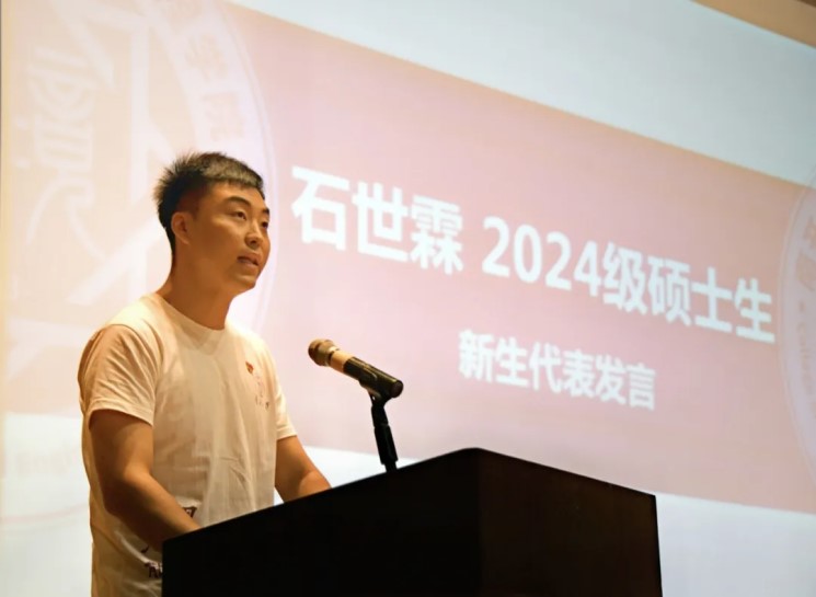 2024级硕士新生代表石世霖对“允公允能,日新月异”八字校训阐述自己的理解,并从立德修身,端正心态;明确目标,坚定方向;夯实基础,提升素养三个方面鼓励大家以丰富的知识积累,以批判性思维发挥专业所长,发扬南开精神,做新时代“南开环境人”。