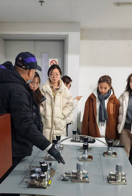 此次培训邀请了气体管路相关专业工程师进行现场讲解。工程师通过多起实验室气体钢瓶典型事故案例,直观呈现了违规操作气瓶可能出现灾难性后果。随后,工程师深入讲解了气体钢瓶的基础知识,并利用气路模型进行示范操作,讲解了包括压力表减压阀使用、气瓶更换等操作流程和相关注意事项。在实践操作环节,同学们利用模型进行了实际操作,工程师纠正了一些不规范或存在安全隐患的操作行为,现场解答了同学们提出的问题。