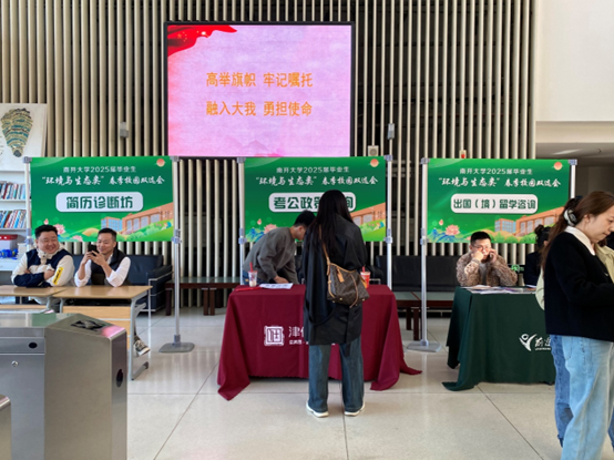 线下的双选会现场热火朝天,各展位前求职的毕业生们络绎不绝,与在场的企业单位代表们自信交流,展现自身扎实的专业素养。同时,学院设立的三大站点拓宽同学们的求职通道,“简历诊断坊”、“考公政策咨询”、“出国(境)留学咨询”助力毕业生挖掘自身的优势亮点,找到真正适合未来发展的道路,共同推动人才培养与企业发展的良性互动。