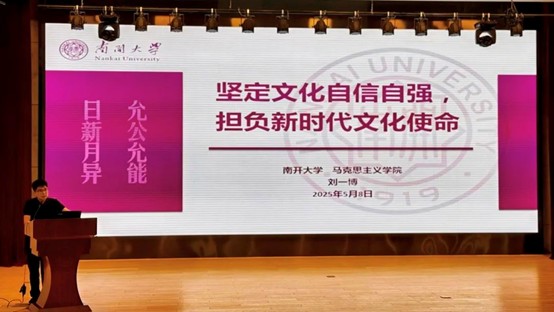 为响应党的二十大和二十届三中全会对文化强国建设作出的部署,深入学习贯彻习近平总书记在文化传承发展座谈会上提出的新要求,我院学生党校组织开展了集中党课,特邀南开大学马克思主义学院刘一博副教授担任主讲嘉宾,以“坚定文化自信自强,担负新时代文化使命”为主题开展专题讲座。