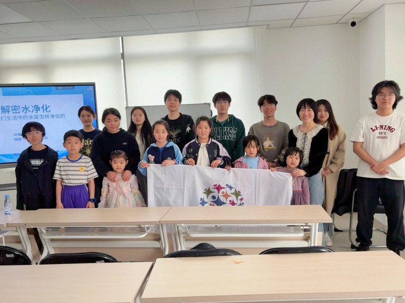志愿者们以白居易的《忆江南》一诗为导线,巧妙地引出了水净化这一主题,由浅入深地向学生们讲解水净化过程的基本原理和所面临的难题。志愿者们对于自来水厂的净水流程,包括混凝、沉淀、过滤、消毒等进行了细致的讲解。同时,还介绍了饮水机的净水原理,对比纯净水和净水器出水的差异,让学生们明白净水器出水保留了对人体有益的矿物质微量元素,更适合日常饮用。在污水净化方面,志愿者们展示了污水问题的普遍性和严重性,指出其广泛存在、来源多样,会导致水质恶化、生态破坏、水资源短缺等问题。最后还分享了社区简易污水处理方法,如利用空塑料瓶、细沙、活性炭等材料制作过滤器,并带领学生进行模拟净水小实验,将知识具象化。