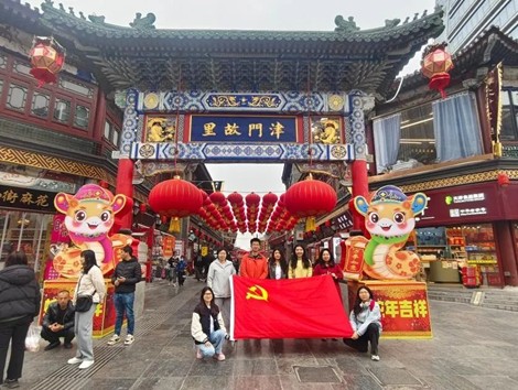 为深入学习贯彻习近平总书记视察天津重要讲话精神,进一步坚定文化自信,传承和弘扬中华优秀传统文化,2024级格拉斯哥硕士生党支部于2025年3月11日组织全体党员前往天津古文化街开展主题党日活动。通过此次活动,党员们循着习近平总书记视察天津的足迹,在社会实践中感悟总书记的殷切嘱托,深化对传统文化的理解与认同。