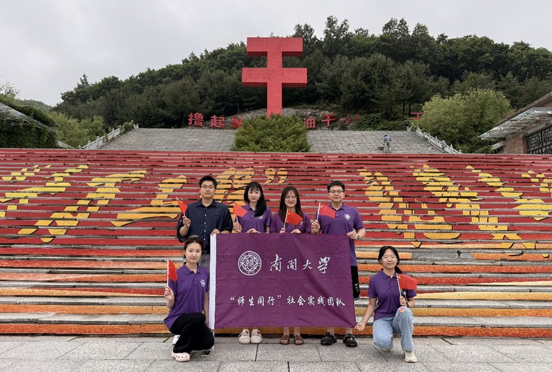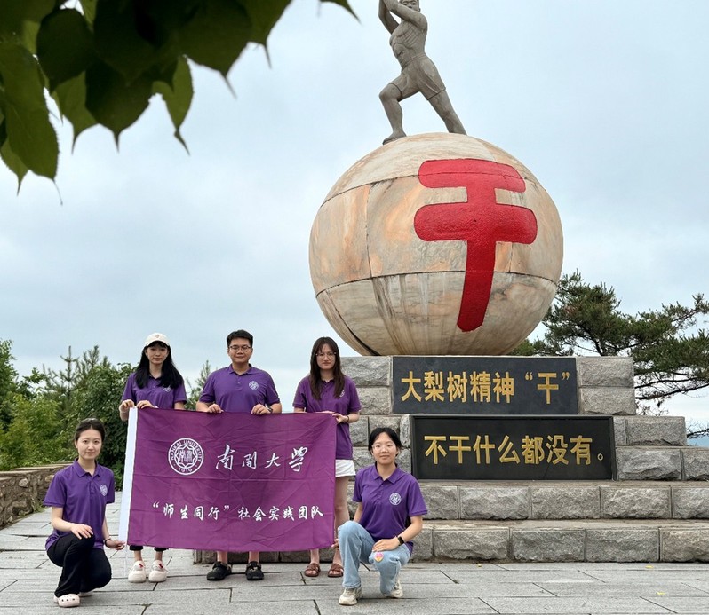 在“干”字广场,队员们仰视那座巍峨耸立的“干”字碑,心中满是崇敬与震撼。“干”字碑高9.9米,宽12.9米,寓意大梨树人长长久久、一心一意干事业的决心。站在碑前,实践队成员们庄严宣誓,要将“干”字精神铭记于心,落实于行。随后,大家沿着当年大梨树人开山修路的足迹,重走“致富路”。崎岖的山路,陡峭的坡道,让队员们真切体会到了大梨树人创业的艰难。但正是在这样艰苦的环境中,大梨树人凭借着坚定的信念和顽强的毅力,创造了属于自己的辉煌。