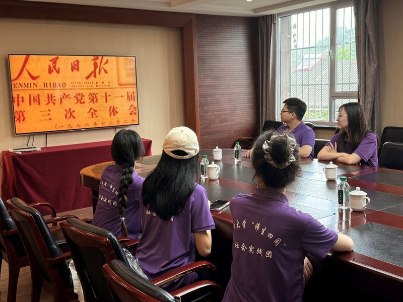学习过程中,实践队还邀请到了大梨树村的老党员、老村民,为大家讲述大梨树村发展背后的故事。他们用朴实的语言,回忆起当年战天斗地的岁月,每一个细节都饱含着对家乡的热爱和对奋斗的执着。队员们围坐在一起,认真聆听,不时提问交流,现场气氛热烈而感人。这些真实的故事,让“干”字精神不再是抽象的概念,而是化作了一个个鲜活的榜样,激励着实践队成员们奋勇前行。